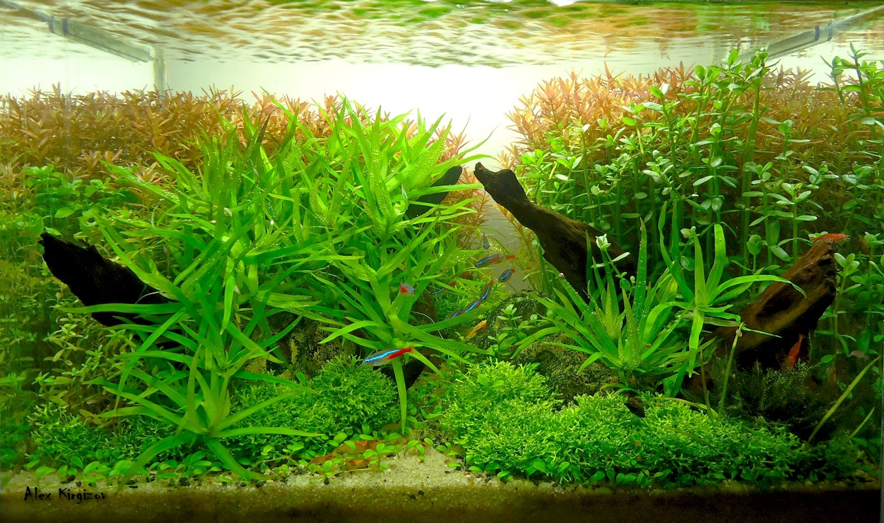 ??Алексей?? шикарный аквариум!!!Но я бы ближний правый кончик коряжки убрал бы или запрятал.Уж очень фонит симетрией.