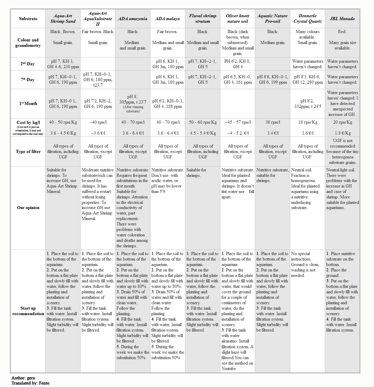 Таблица доступна на английском языке благодаря разводчикам креветок с зарубежных порталов http://www.shrimpnow.com/forums/show...or-shrimp-tank и сдесь http://www.blue-tiger-shrimp.com/blo...ua-soil-table/