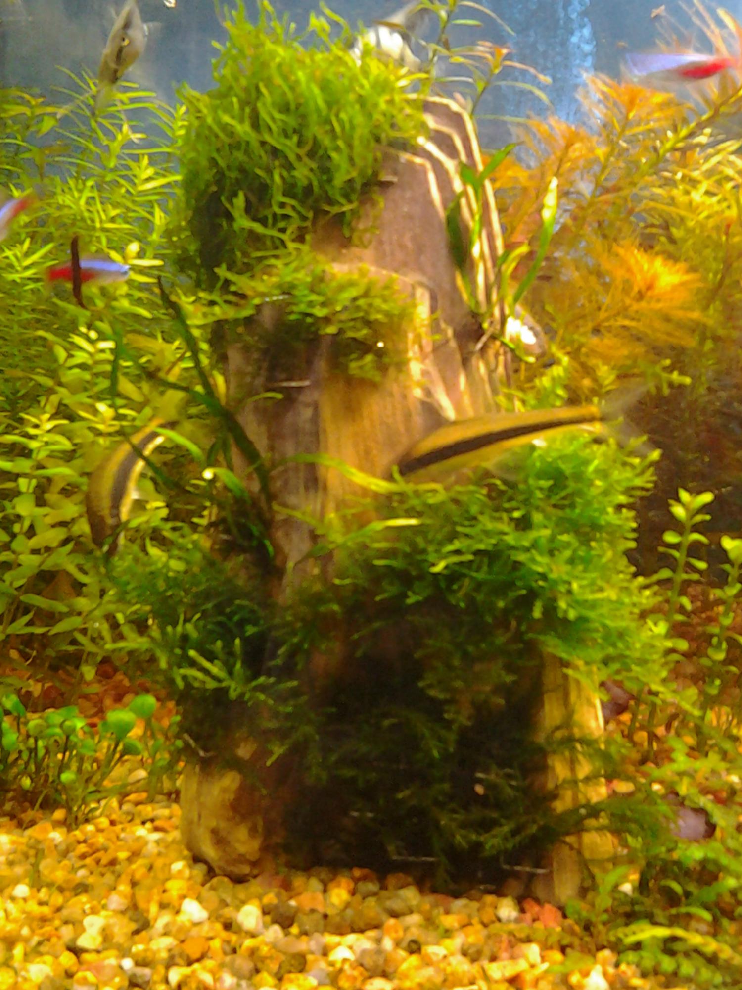 1)вываренная деревяха с выделенной структурой( в воде тонет, воду не красит, красиво смотрится)
