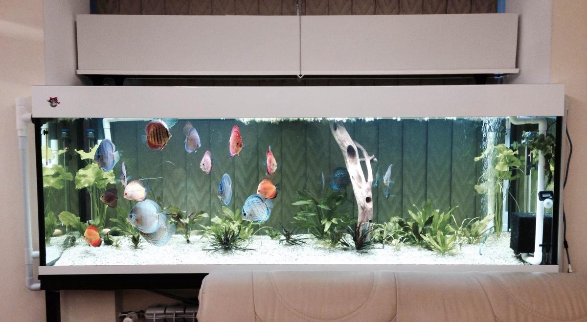 В аквариуме обитают дискус :5 шт. КОБАЛЬТ (12 см.;12,5; 12;12;11 см.; Red velvet 2 шт. по 8 см, 1шт. -Discus-Yellow Crystal- 7,5 , 3 шт. Discus-Red Turquoise 8,0 см; 7,0 см, 6,0; 2 шт. Red Marlboro ; 1 шт. - Pigeon tiger - 7,0 : 5 шт. Penang Eruption Discus (13, 11, 11 и 9 см,8,5 см.); 2 шт. Blue Diamond Discus ( 8 см, 8 см), а также 6 анциструса обычных и 1 сомика Corydoras ПАНДА, 3 шт.L340. и 2 шт. L 181.