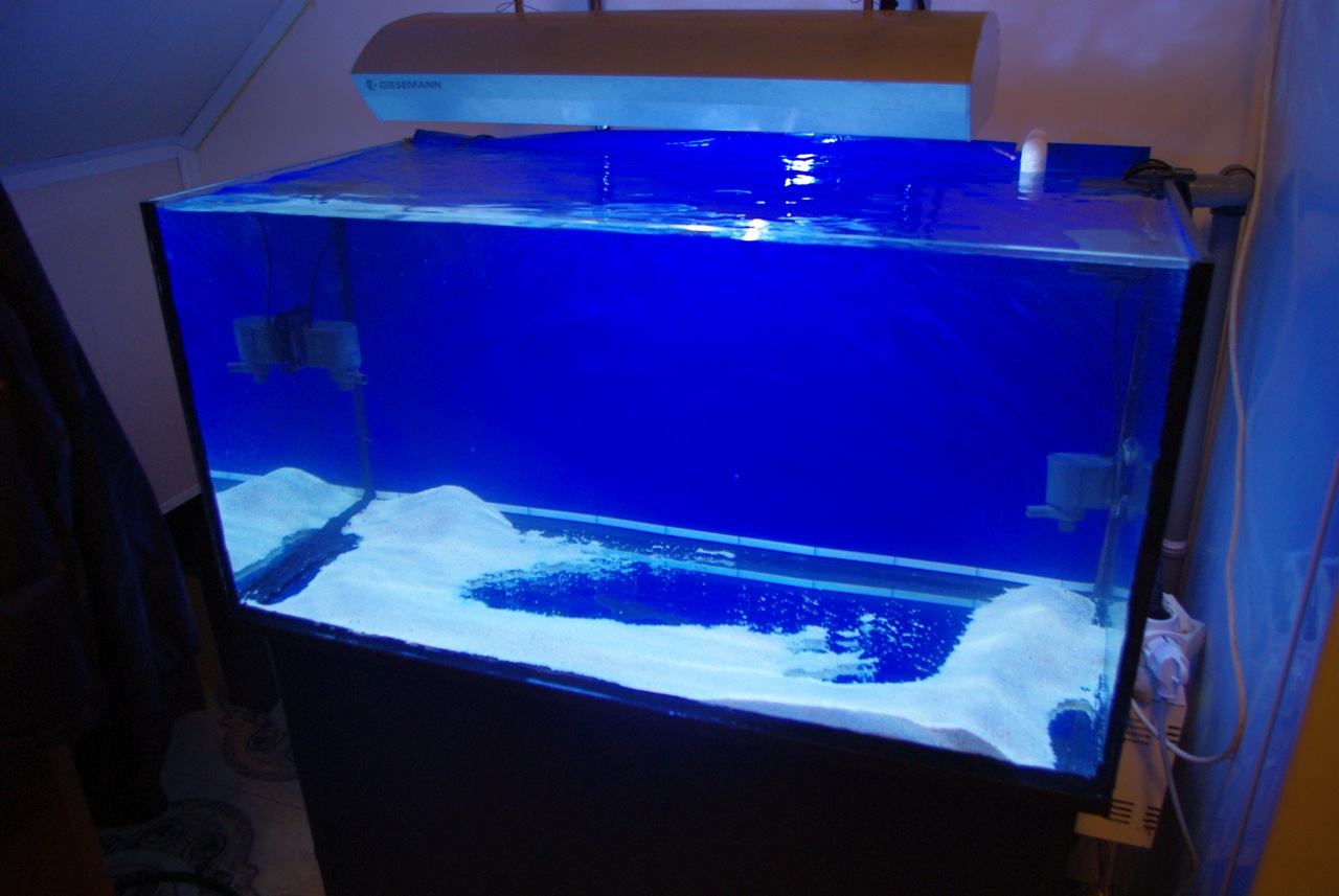 Грунта немного, планируется камней килл 10-15 не больше, хочу оставить больше свободного места, куплю камни и тогда досыплю еще коралловой крошки, из живности будет и рыбы и жесткие кораллы.