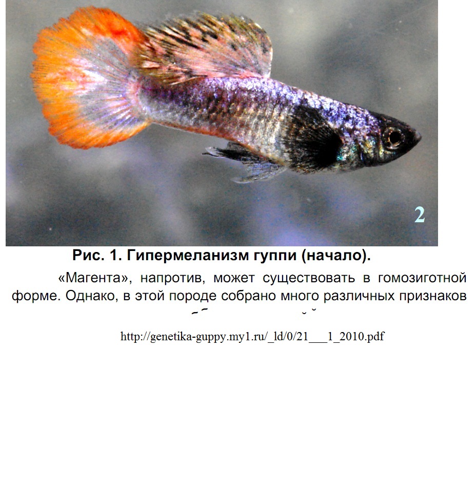 Наткнулся на несколько интересных сносок по магенте. На фото 1 -сноска из этой статьи - http://genetika-guppy.my1.ru/_ld/0/21___1_2010.pdf . На остальных фото - примеры из статьи Эксперементы по скрещиванию Tomoko Young , перевод гугла.