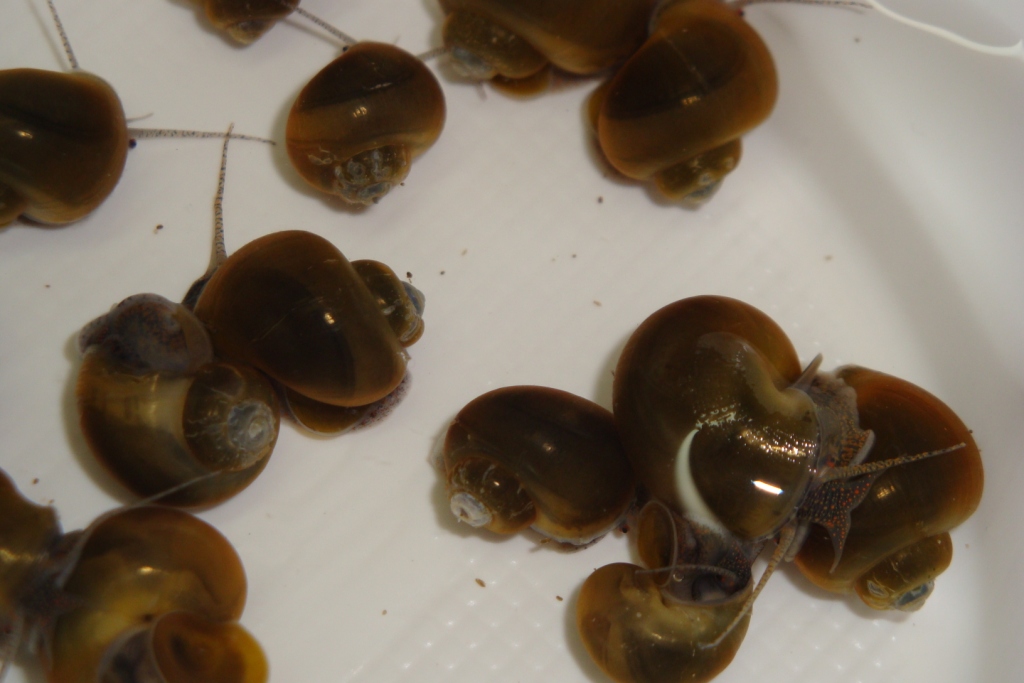 Ракушки у этих улиток желтые а тело синее, что создает интересный оливковый оттенок.