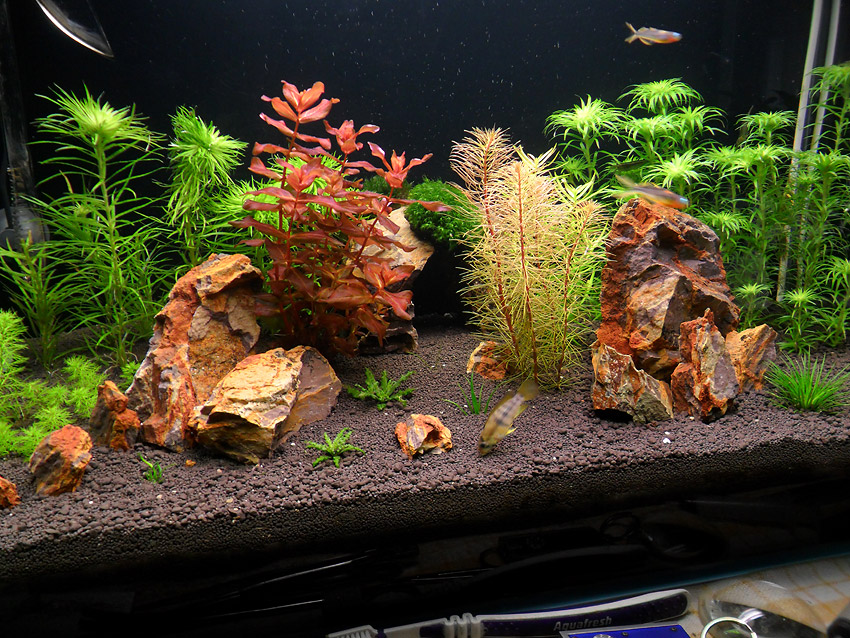 Еще одно преимущество в том, что такие маленькие рыбки как неоны и эритрозонусы, которых вы посадили в аквариум чтобы тонко подчеркнуть композицию, неделями не вылазят из густых зарослей и вы их просто не видите! Хищники будут выгонять их из укрытий и заставлять держаться на виду. " и самое главное , я смотрел фото многих любителей апистограмм, в т,ч и на этом сайте и видел там довольно сложную траву( типа тонины, эрикаулоны и т.д.) которую не возможно вырастить без CO2 и питательного грунта.Не складуха получается,как то так.Так что извините,но я думаю что с рыбкой все будет хорошо.  Без обид. Именно потому что нужно минимум нитрата я и убрал хемиантус Кубу из банки.