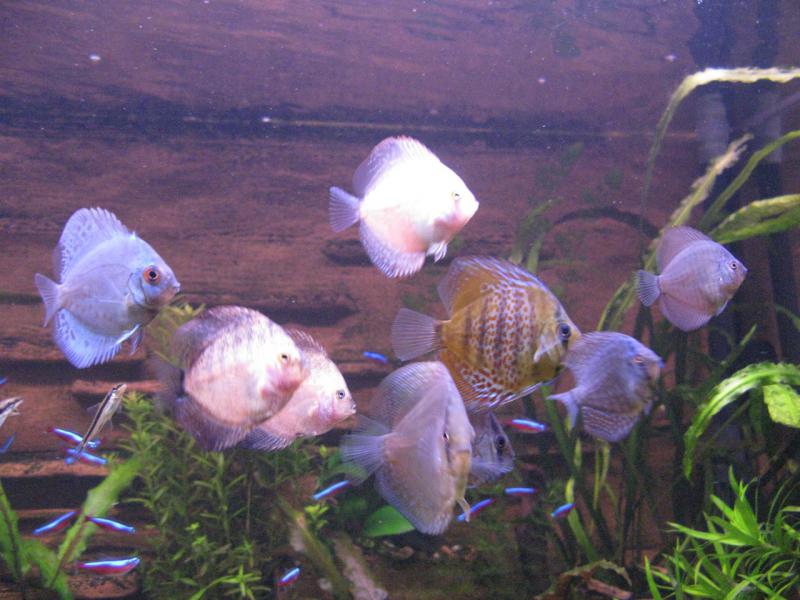 Население : дискусы,красные неоны, апистограммы, лабео, акантосфальмусы,макробрахиум и неокардины.