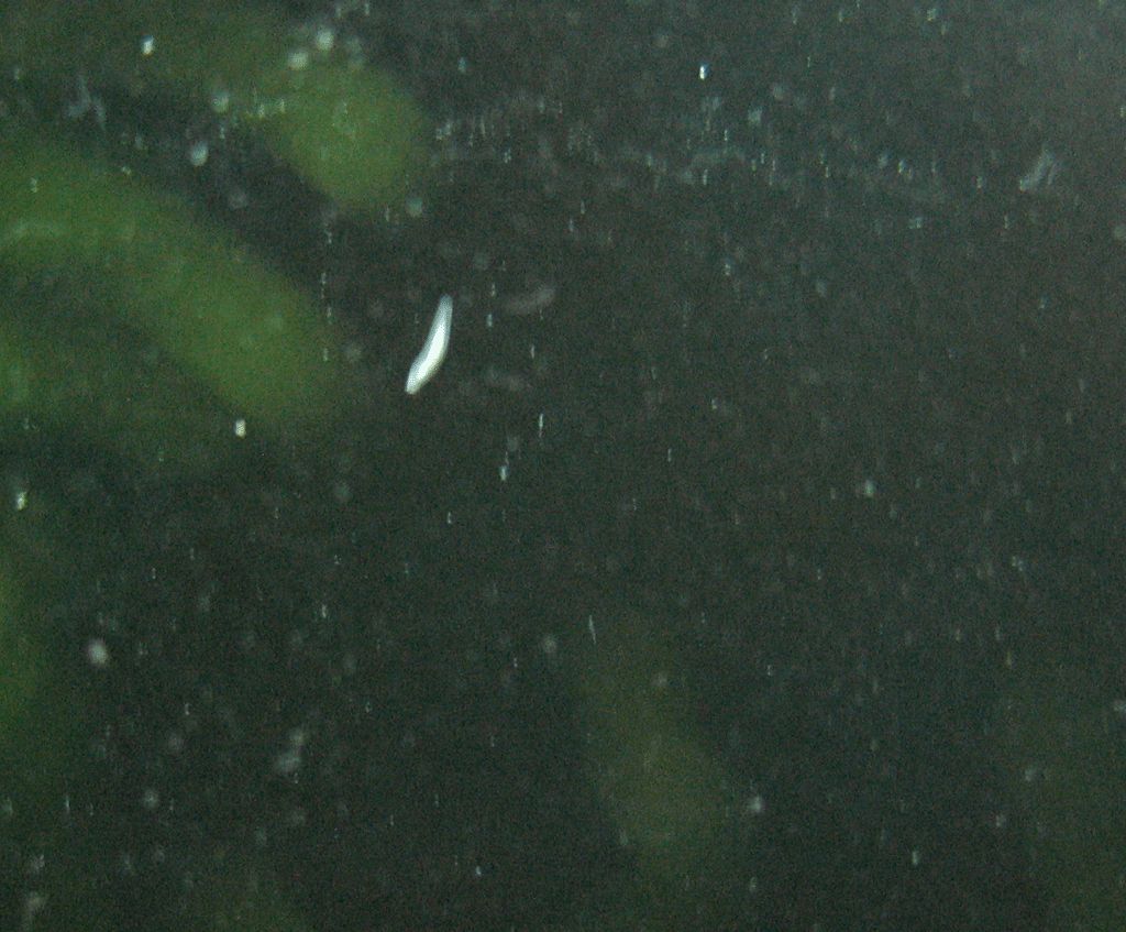 на 1 фото, видно нечто (видно плохо, согласен), длина 1-3 мм, белого цвета, похоже на червя ... Ползают по стеклам, с утра видно большее количество. Криль иногда подкармливаю улитками.