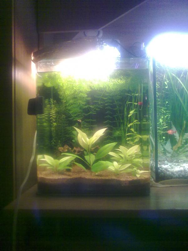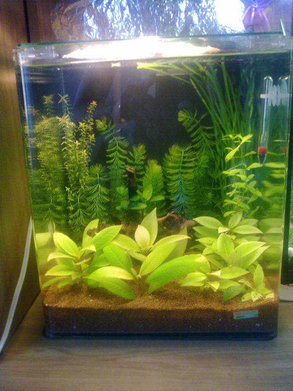 Второй мой аквариум ето кубик на 30л. данерли. Очень красивая и классная вещь. ему где то 1-2 месяца. Из обитателей нет ни кого. Растения теже что и в 80л. Будут все заменены !