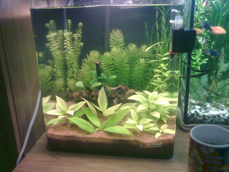 В планах досадить его растениями , ( ехиндориус амазонский, сагитария , папоротник таиландский, криптокарины нано ( зеленые)).