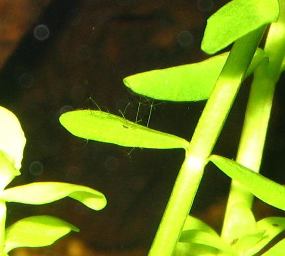 У меня в креветочнике завелись как-то подобные звери. Сидели на листьях и размахивали щцпальцами. Потом через некоторое время исчезли сами собой. Почему - не знаю, ничего против них не предпринимала..