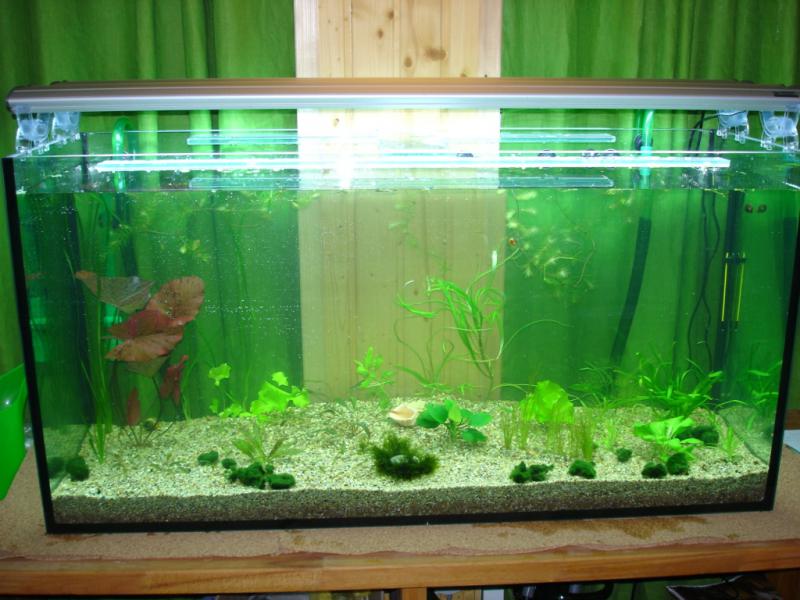 Благодаря помощи и советам 3 форумчан (-паша-, astep, AIIPEJIb) аквариум обзавелся растениями и обрел такой вид.