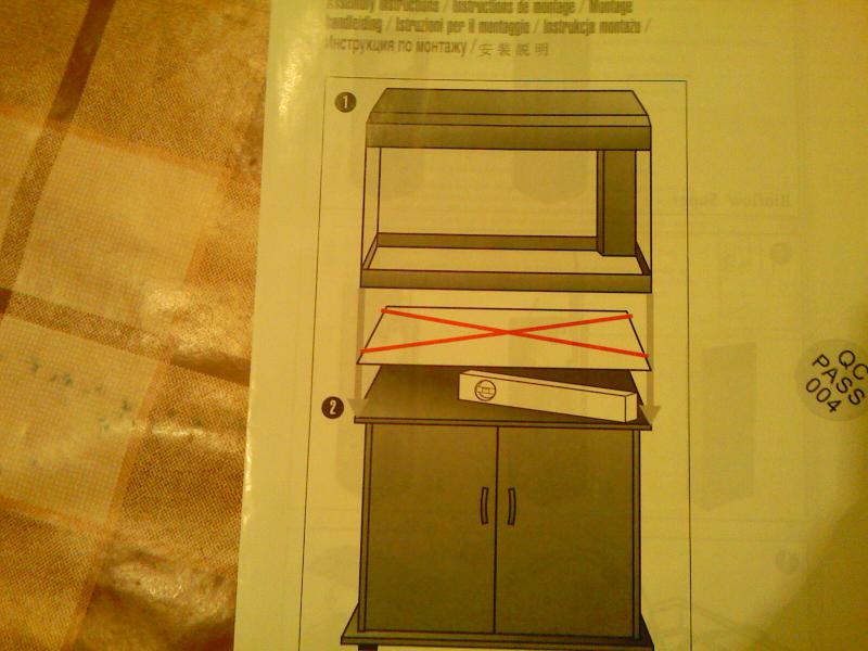 Причём по инструкции к Ювелю строго настрого запрещено что-либо стелить на тумбу перед установкой на неё аквариума. Таким образом, аквариум, вставленный в раму, стоя на тумбе, касается её только этой рамой, а вся стеклянная площадь дна не достаёт до тумбы на величину толщины этой самой рамы. То есть - на весу.