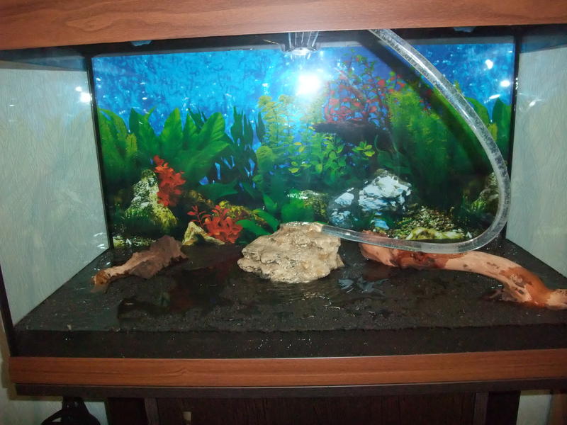 Так как в сфере аквариумистики я навичок,был простой запуск на декаративном грунте и без всяких растений .