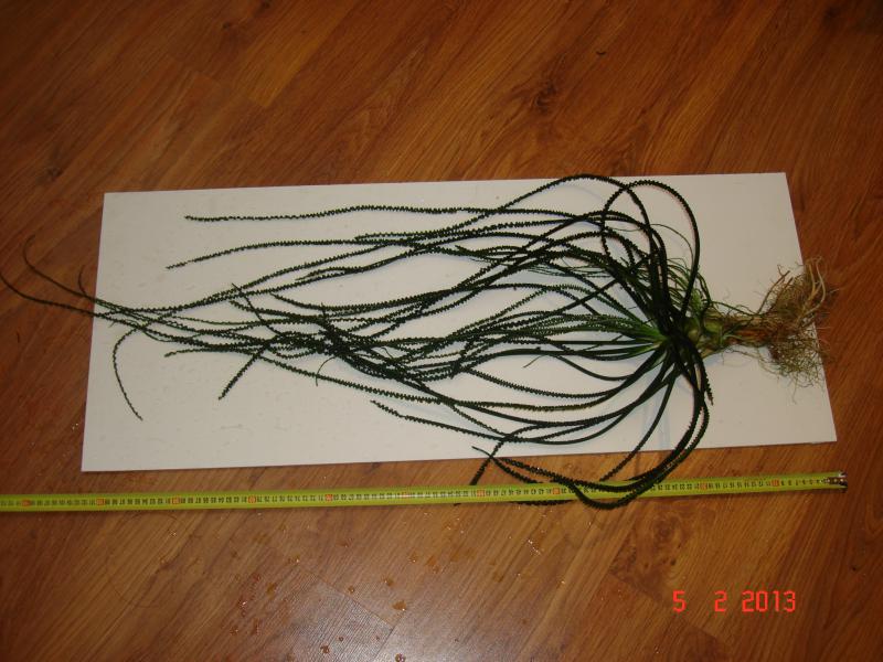Куст высотой около 110 см.Очень красиво будет смотреться в большом или высоком аквариуме. Растение не прихотливое. На кусте несколько деток, которые можно отделить и рассадить в другие аквариумы
