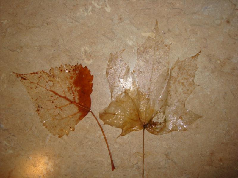 Все листики, кроме дубовых, съедаются очень быстро. За несколько дней от листочка остается один трафарет.