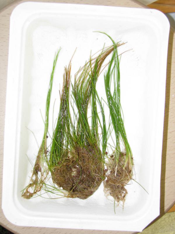 Большой пучок Eleocharis acicularis (Элеохарис ацикулярис; рус. Ситняг игольчатый), см. фото. В пучке очень много маленьких кустов для рассады.
