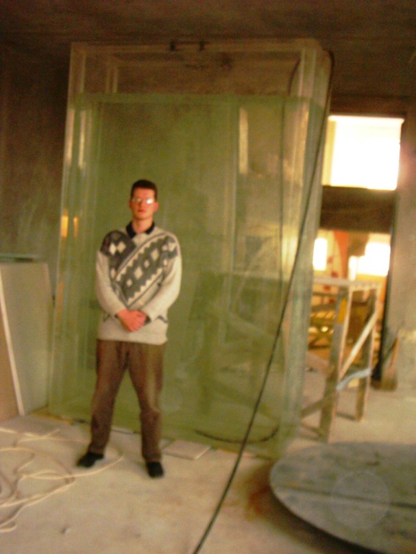 Аквас на три тонны находится за спиной у парня на фото. Банка размером с шифоньер высотой 2.9 метра.