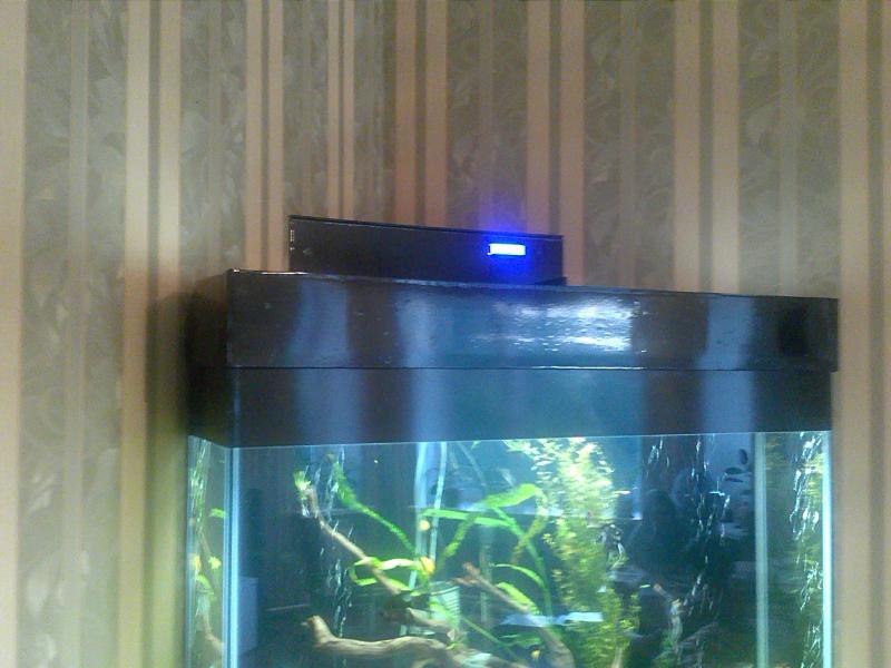 я новичок в аквариумистике! почитав Этот форум и соорудил вот такую вот крышечку ( за фото сори зеркалка была утоплена на море так что фоткал на телефон ) из 4 мм ПВХ на угловой аквариум примерно 220 л.
