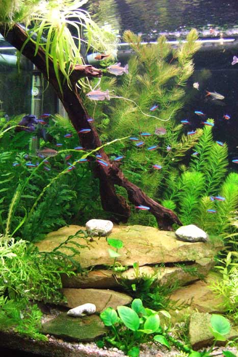 А как по мне- все оформлено со вкусом и учетом пожеланий аква-жильцов.  Действительно красиво, только лишь портит вид криво поставленная флейта- но это так, чайная ложечка дегтя...
