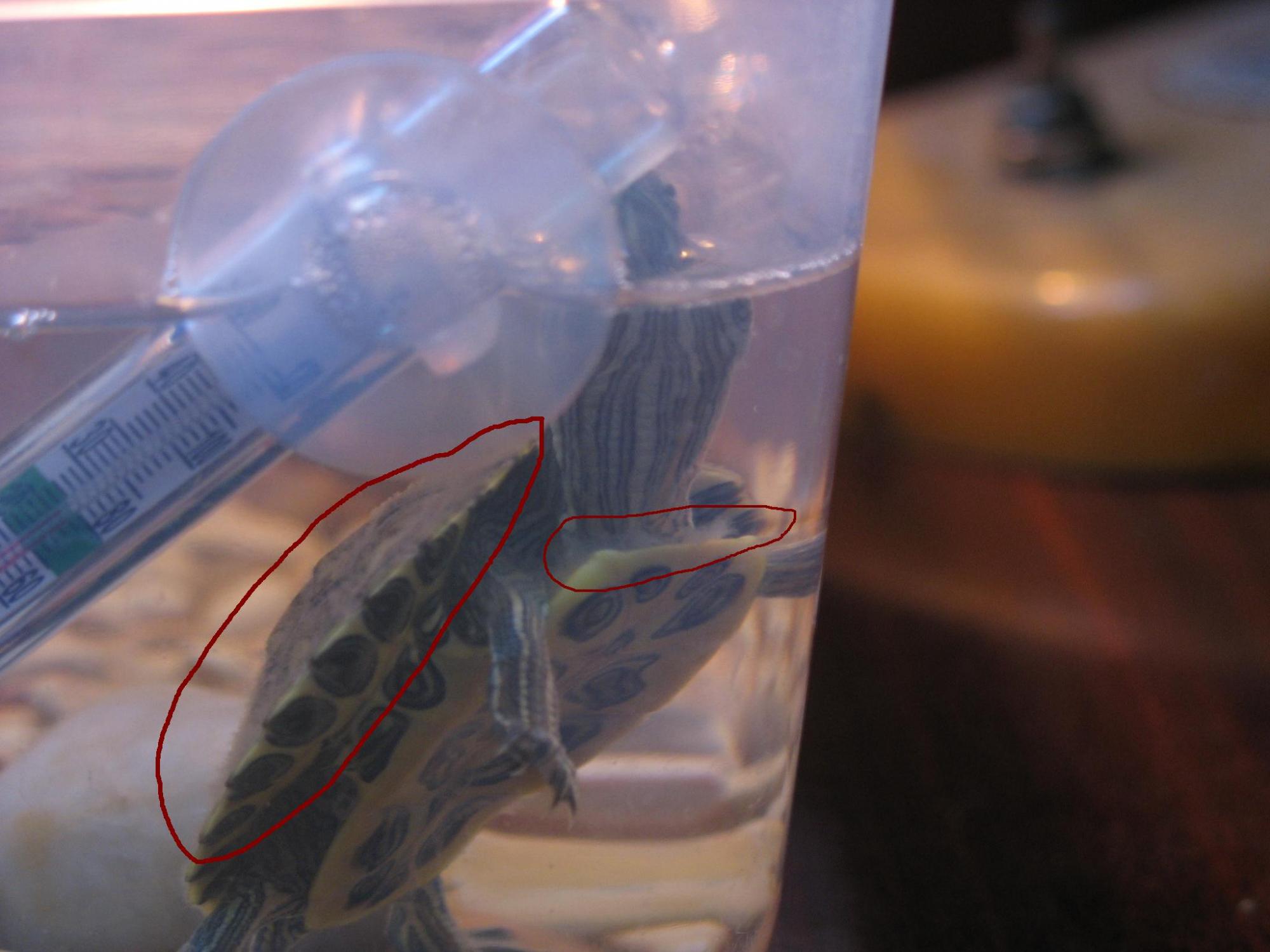 черепахи видимо мало находятся под лампой.. греть и сушить..