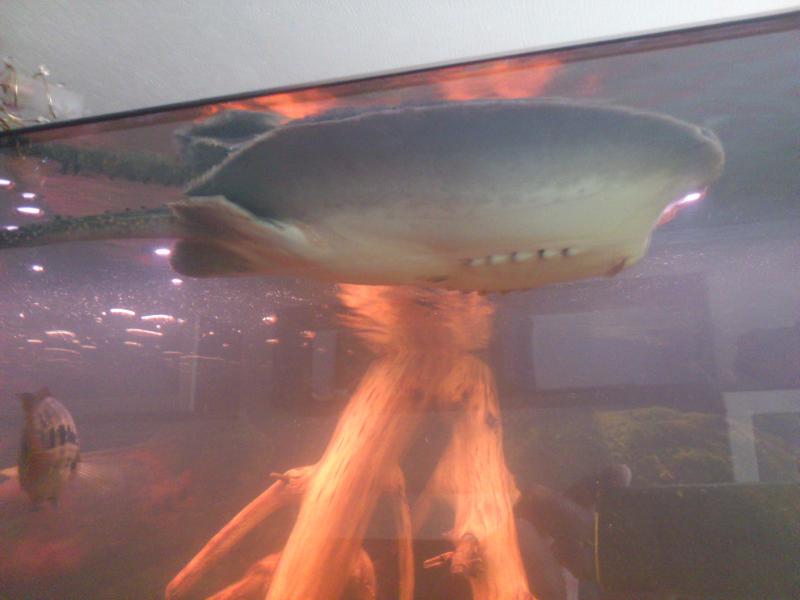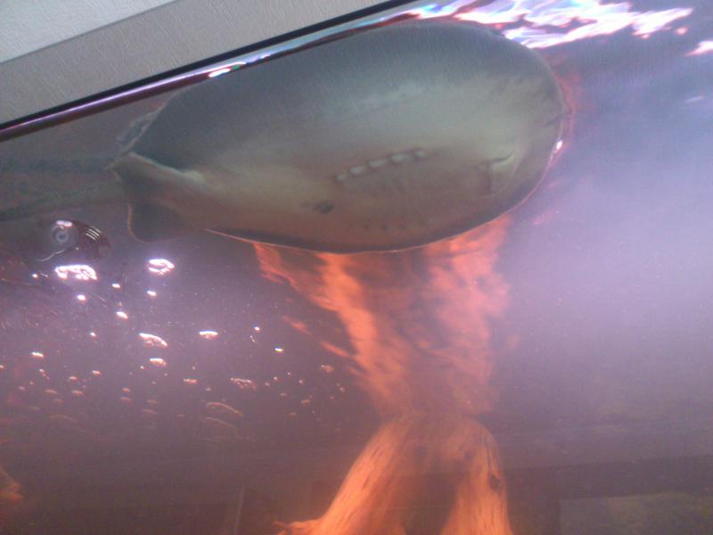 Скату девочке 1,2 года, в новом запущенном аквариуме с 27.02.2013г на тонну живет вместе с самцом 1,1 года и цихлидами центральной америки.Сегодня утром обнаружил ската зависшим под верхом.Скат очень редко спускается вниз и все время находится у поверхности,подплывая и на течении от двух FX5 относится вглубь аквариума.
