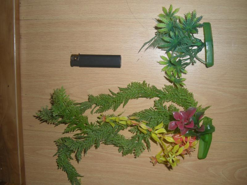 5. Искуственные растения (2 шт, 1 длинное, 1 мелкое), обкатаные белые камни (с ладонь), раковины ропана