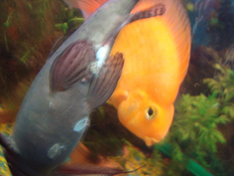Подскажите что с сомиком! вчера было одно пятно возле хвоста , сегодня уже что то на пузе. Не заразно ли это? Я заметила что он часто возле обогревателя висит.Может ожег ?