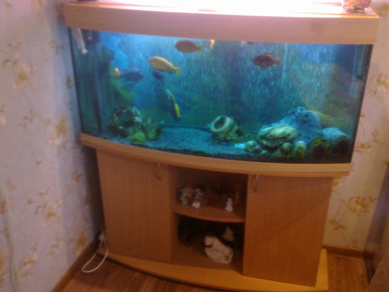 Продам аквариум линзу на 255 л с оборудованием и рыбами. Размер банки 1,2*0,4*0,55м. Фильтр выносной Fluval 306 (куплен 6 месяцев назад). Крышка с лампами Т8, 2 шт. по 20 Вт. Компрессор. Цихлиды крупные. Фото прилагается. Цена за все 3000 грн. 050-209-57-01 Игорь