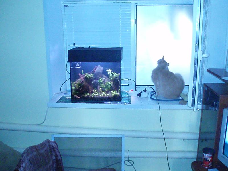 -Роль дырки для ветиляции выполняет вырез на задней панели для провода питания фильтра и шланга аэрации. Кулер сзади конечно логичнее, но места маловато оказалось (ширина аквариума всего 40см минус баласты и блок питания кулера)