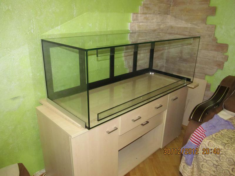 Литраж такой-же как у Вас. Клеить уже научился, но только проблема в запахе в квартире и детях, которые постоянно норовят пальчиком залезть в силикон. Оно ведь так классно потрогать и вытереть чёрным о что-либо. Крышку тоже сам делал. Ещё надо в ней окантовку из уголка алюминиего сделать. Отражатели из водосточной трубы за 64 грн, обклееные оракалом и подогнутые феном строительным для придания формы параболы. Кстати есть остаток 1,5 м.п. этой трубы. Валяется. Из ламп: