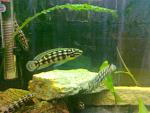 Всім доброго дня! Треба звільнити "баночку" під іншу рибасу, тому пропоную вашій увазі 3 штучки (самка + два самця) Юлідохроміс Мерлієра (Julidochromis marlieri). Екземплярам приблизно рік, може трішки більше. Здорові, активні, апетит відмінний! Самочка розміром 7 см, самці трошки менші. Перші два фото реальні мої, інші три з нета так як якість моїх погана.