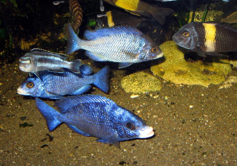 Синие это блю Заиры. В таком размере это от 400гр. за шт. и выше. Но ваш объём слишком мал для рыб, которые в идеале выростают до 40см.