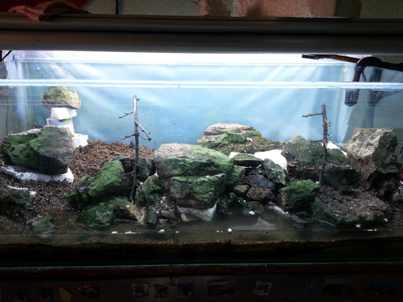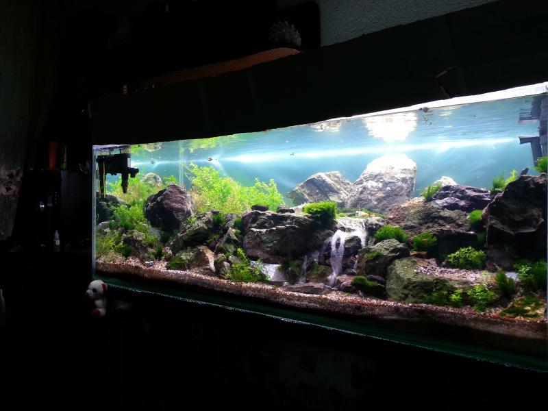 Сегодня наматывал мох на ветки ели пока леска не кончилась.Вот такой вид имеет аквариум сейчас.Работа над аквариумом идет почти каждый день