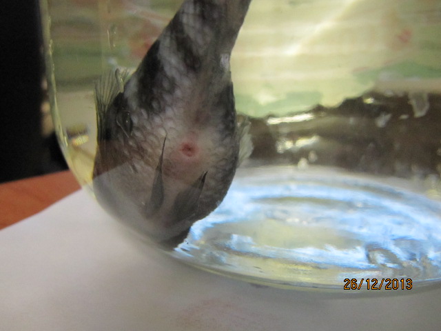 Теперь, глядя на животик рыбки скажу , что заметила изменения месяца 2 назад, но отнесла к своеобразной форме тела рыбы.