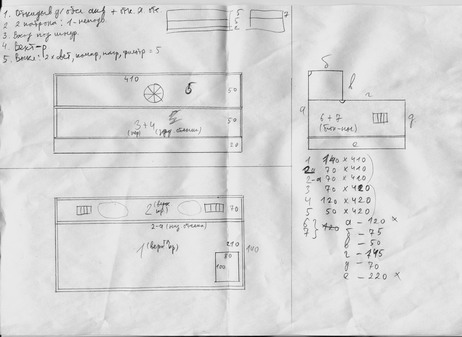 Далее нужен план. Схема. Без этого никак. Думал поставить какую-нибудь САПР на компьютер, даже уже скачал, но лень стало разбираться в ней. Плюс к этому не хотелось сильно затягивать процесс, а изучение программы - это время. Поэтому действовал по старинке. Набросал чертежик, наплевав на все правила черчения. Главное - я там все понимал