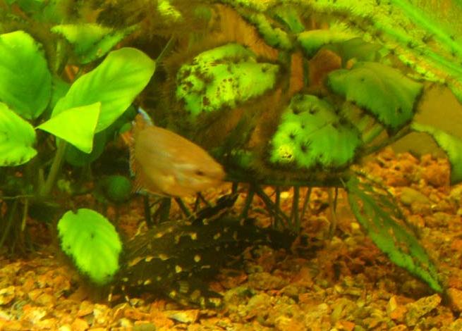 Фамилия у него - агамикс звёздчатый. Кажется, из броняковых сомов. Активен больше ночью, любит "попищать".