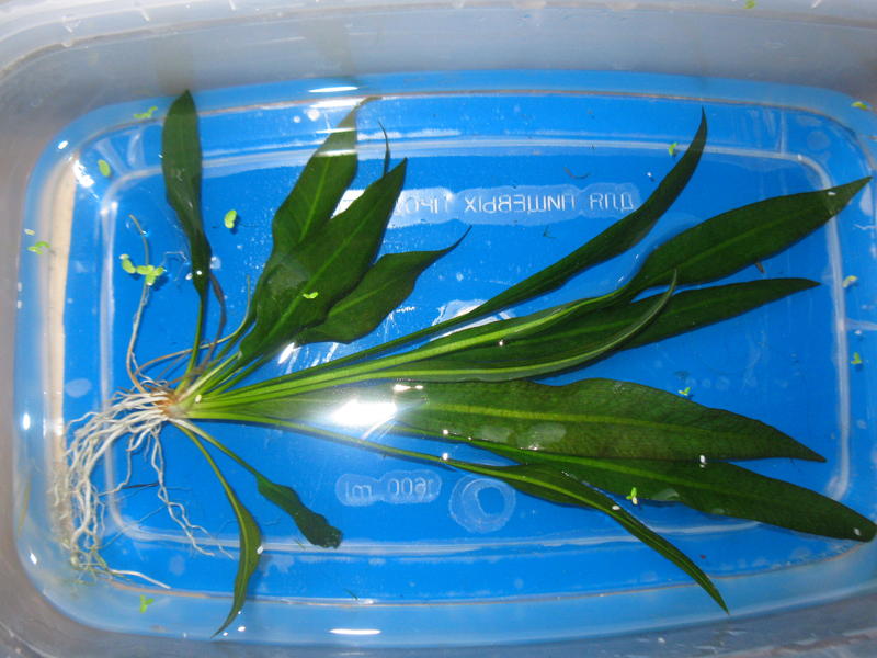 Классический природный эхинодорус,довольно компактный(35-40см) подойдёт для среднего плана . При ярком свете на листе коричневая сетка.