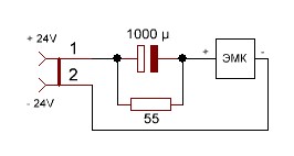 При включении конденсатор разряжен и через цепь идет полный ток. После заряда конденсатора ток уменьшается в два раза, что достаточно для удержания клапана и он при этом не греется. Клапан взят от систем осмоса.