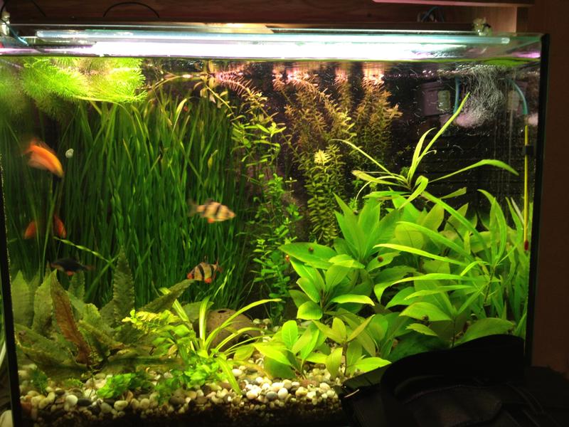 Как всегда все было не так просто как казалось, залил воду прилепил лампу, засыпал не пойми какой грунт ну и естественно втыкнув пару кустиков напускал кучу рыбок.