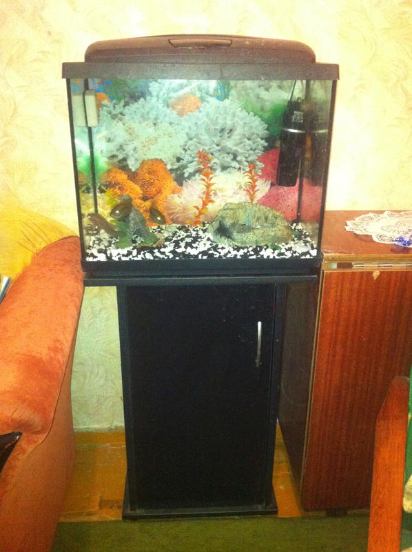 Продаю аквариум 60л + тумба + поддон + крышка ,также внутренний фильтр ,грунт,декорации,сачок ,кормушка ,и собственно сами рыбки