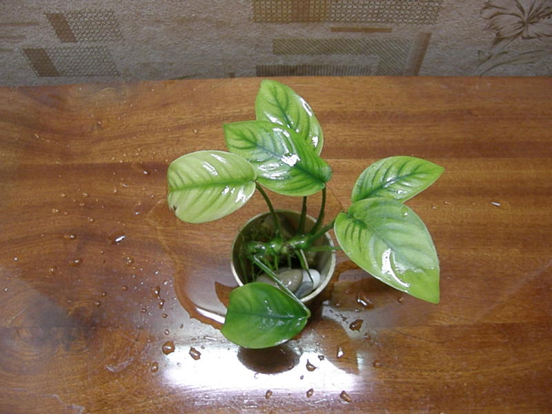 В природе анубиасы растут в болотистой местности. Корень под водой, листья над. В период дождей растения проводят под водой.