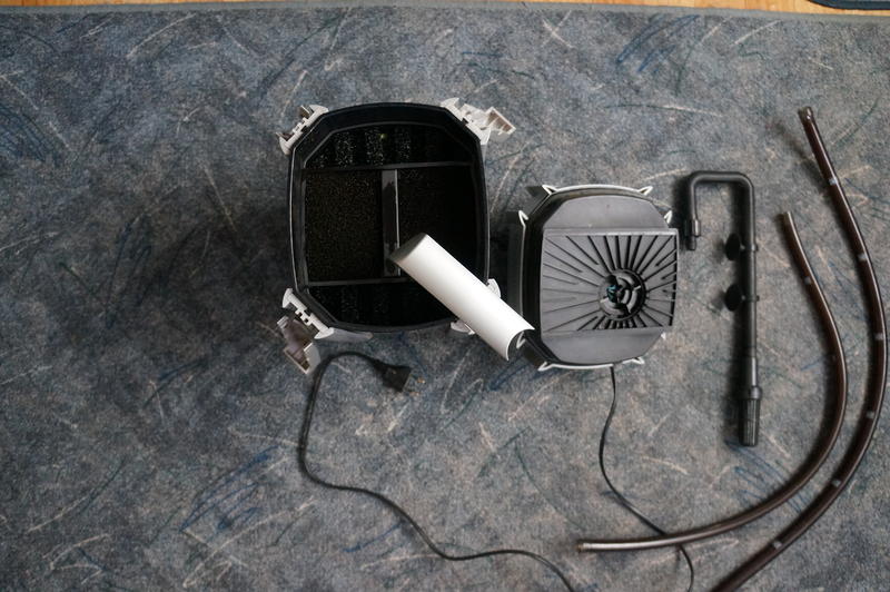 Причина продажи фильтра - выиграл фильтр новой модели. Этот сейчас стоит без дела. Если бы новый фильтр мне так не достался, я бы эту модель никогда не поменял. В работе очень тихий. Стоял на банке 170 литров, течение очень хорошее. С лили пайпами была воронка на поверхности воды.