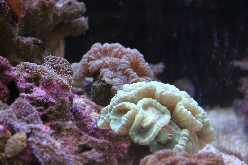 Была проведена небольшая перестановка камней и кораллов. В конце месяца думаю окончательно все расставить по своим местам и докупить животных. После этого планирую оставить в покое аквариум годика на пол.