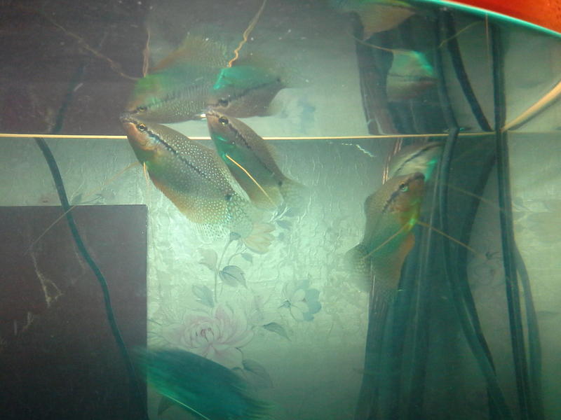 Отдам в хорошие руки 6 гурами(2 мраморных -самка и самец,и 4 жемчужных-2 самки и 2 самца). Взрослые особи, тело-6,5-7 см. Очень красивые! Отдаю в связи с отъездом, СРОЧНО! Фото не очень, т.к фоткала на телефон. 093 6812942, 095 823 28 24 Елена.