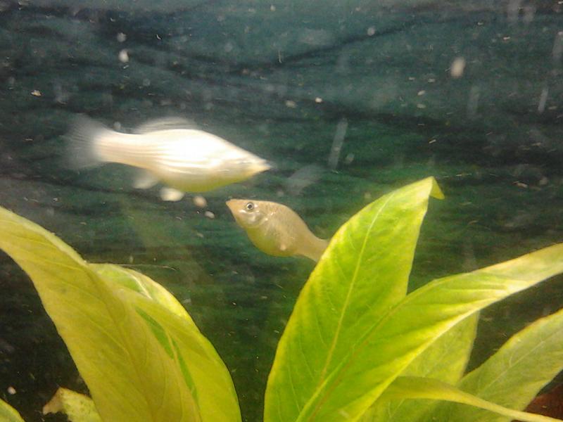 Здравствуйте. Возникла следующая проблема: заметила у моллинезии-снежинки на брюшке сбоку внизу серое пятно (около 2-3 мм в диаметре). Через 3 дня на этом месте образовался белый прыщ примерно такого же размера, но достаточно выпуклый. Что это может быть? Чем лечить? Поведение моллинезии обычное (на фото эта молли получилась на заднем плане). И возможно ли лечение в общем аквариуме? Спасибо.