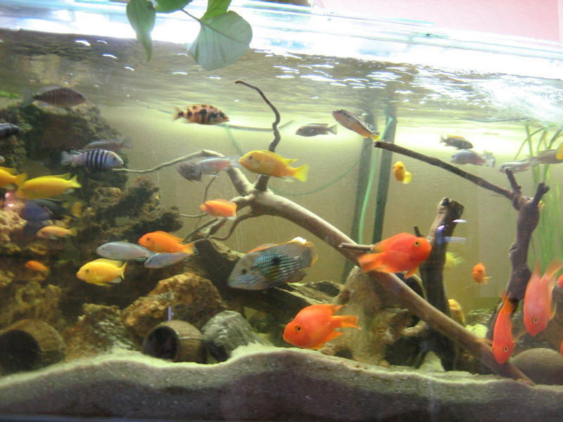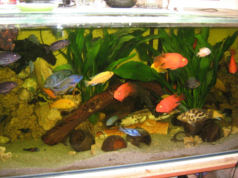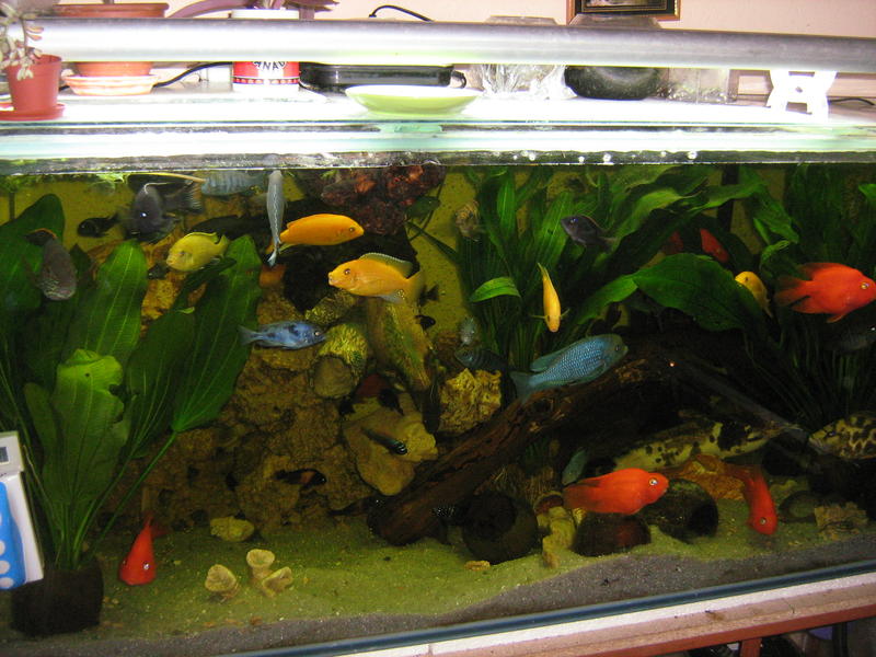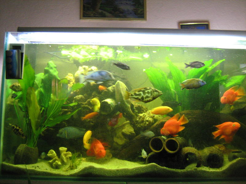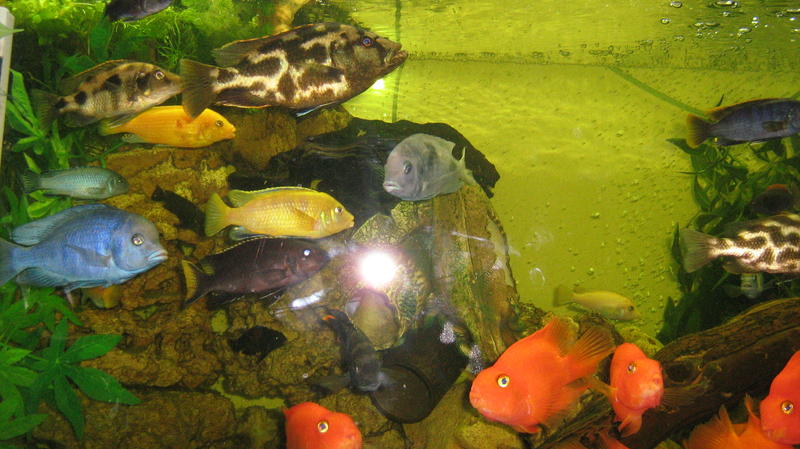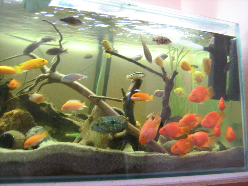 Аквариум 450 л, присутствует перенаселение. Вопрос перенаселения никогда не волновал - все решалось добавлением компрессора и помп к уже имеющемуся внешнему фильтру + своевременные подмены воды. Состояние рыб и регулярные нересты подтверждали то, что рыб устраивает такое содержанание.