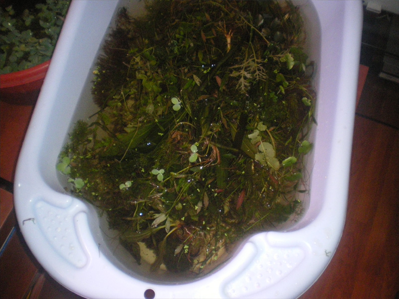 1) Всех рыбософ и растючку перекинул в таз. Установил перегородку вырезанную из крышки короба для прокладки электропроводки.Если хотите чтоб не было видно слоистости (вермикулит белый и не особо будет смотрется