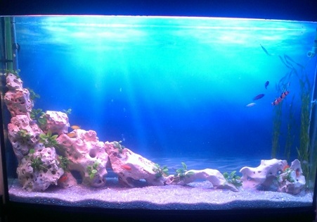 после первого дня запуска воду пришлось сливать:-( ,а то проходя мимо аквариума(он стоит в нише,в коридоре) пол играл и вода колыхалась.