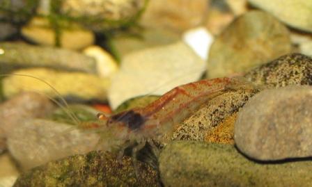 Красненькие креветки живут отдельно, начинают размножаться. На днях видела микроскопического младенца, можно все глаза поломать, пока такую малышню высмотришь.
