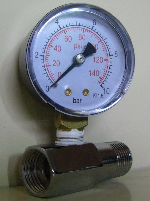Манометр + два фитинга,(фото 1) предназначен для контроля давления подаваемой воды на фильтр.