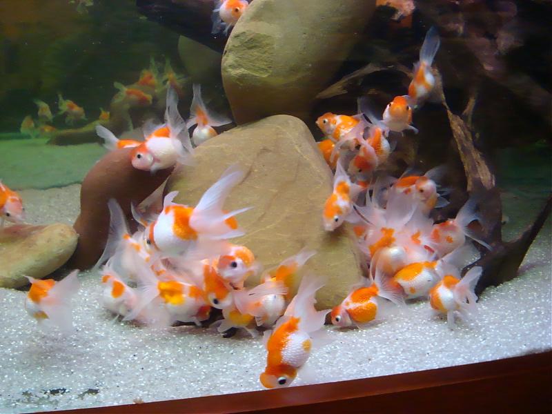 Представьте, как красиво сочеталось бы оранжево-красная окраска золотушек (по-моему там ситцевые риукины?) и яркая зелень например анубиасов или эхов! Или по форме-камни и шарики кладофоры.